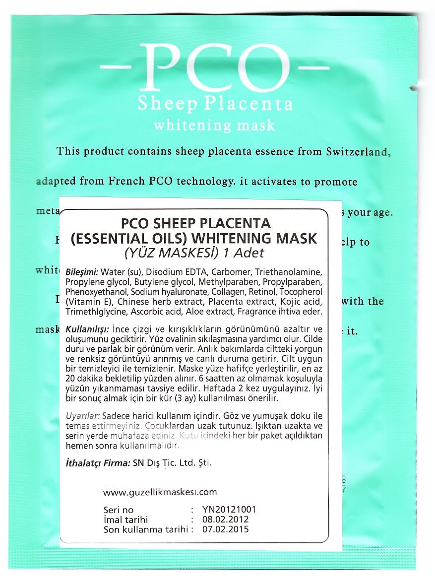 PCO Sheep Placenta Whitening Mask Özellikleri: